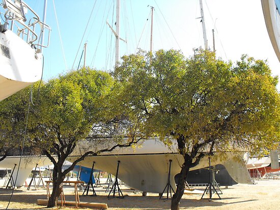 "Boat yard perspective in Greece" by SlavicaB | Redbubble