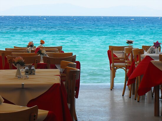 "Greek Island Samos restaurant by the sea #photography" by SlavicaB | Redbubble