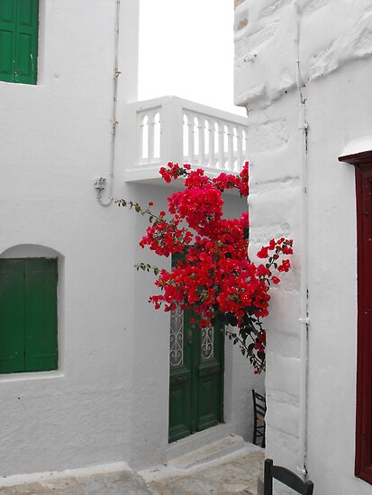 "Greek Island street and flowers" by SlavicaB | Redbubble