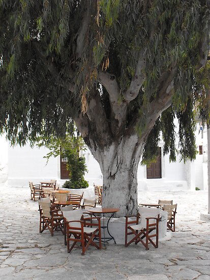 "Greek Island terrace and willow tree" by SlavicaB | Redbubble